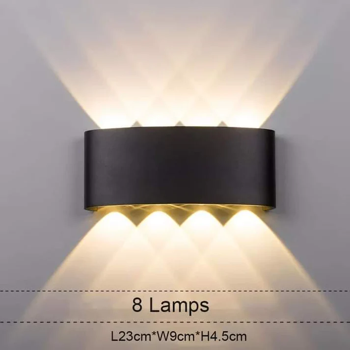 Elevate your exterior with this 4+4 Up Down COB LED outdoor wall light, crafted for modern outdoor home lighting and commercial outdoor lighting. With eight focused beams (4 upward + 4 downward), it creates a striking decorative effect while ensuring maximum brightness. Perfect for gardens, porches, hallways, hotels, and building exteriors, this fixture combines style, durability, and energy efficiency.